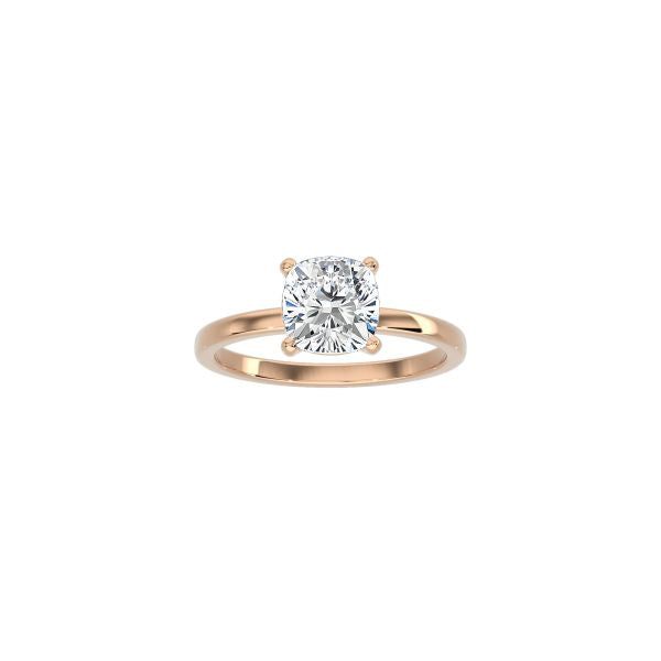 The 4 prong classic setting is the perfect choice for those who want a minimalist design that will last forever. Simple and elegant, it features a cushion cut diamond that in a 4-prong setting. The plain band hightlights the timeless brillance of the center stone that captures light at every angle.
