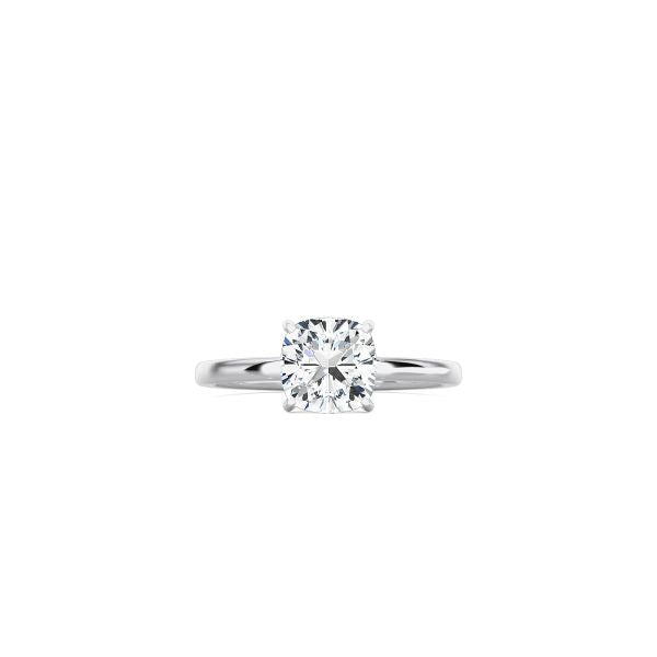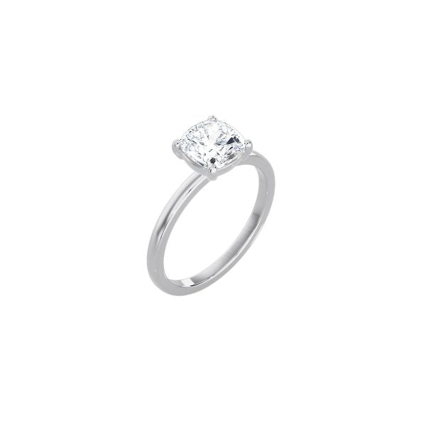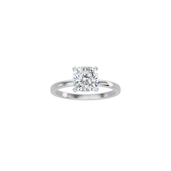The 4 prong classic setting is the perfect choice for those who want a minimalist design that will last forever. Simple and elegant, it features a cushion cut diamond that in a 4-prong setting. The plain band hightlights the timeless brillance of the center stone that captures light at every angle.
