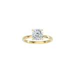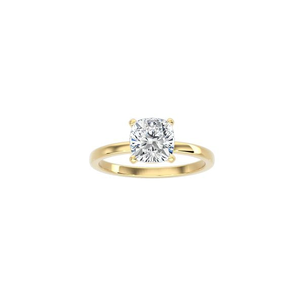 The 4 prong classic setting is the perfect choice for those who want a minimalist design that will last forever. Simple and elegant, it features a cushion cut diamond that in a 4-prong setting. The plain band hightlights the timeless brillance of the center stone that captures light at every angle.
