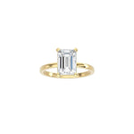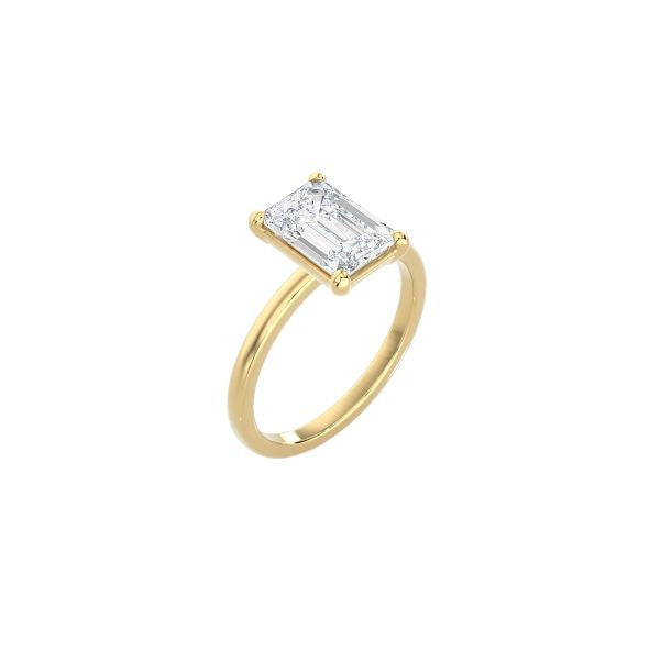 The 4 prong classic setting is the perfect choice for those who want a minimalist design that will last forever. Simple and elegant, it features an emerald cut diamond that in a 4-prong setting. The plain band hightlights the timeless brillance of the center stone that captures light at every angle.