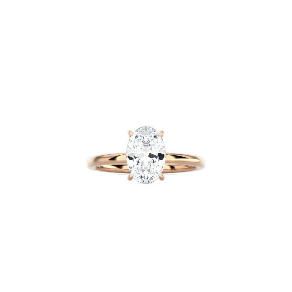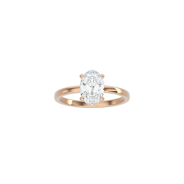 The 4 prong classic setting is the perfect choice for those who want a minimalist design that will last forever. Simple and elegant, it features an oval diamond that in a 4-prong setting. The plain band hightlights the timeless brillance of the center stone that captures light at every angle.