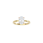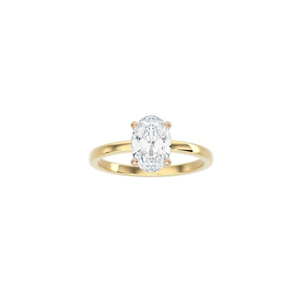 The 4 prong classic setting is the perfect choice for those who want a minimalist design that will last forever. Simple and elegant, it features an oval diamond that in a 4-prong setting. The plain band hightlights the timeless brillance of the center stone that captures light at every angle.