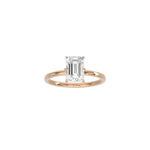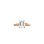 The 6 prong classic setting is the perfect choice for those who want a minimalist design that will last forever. Simple and elegant, it features an emerald cut diamond that in a 6-prong setting. The plain band hightlights the timeless brillance of the center stone that captures light at every angle.