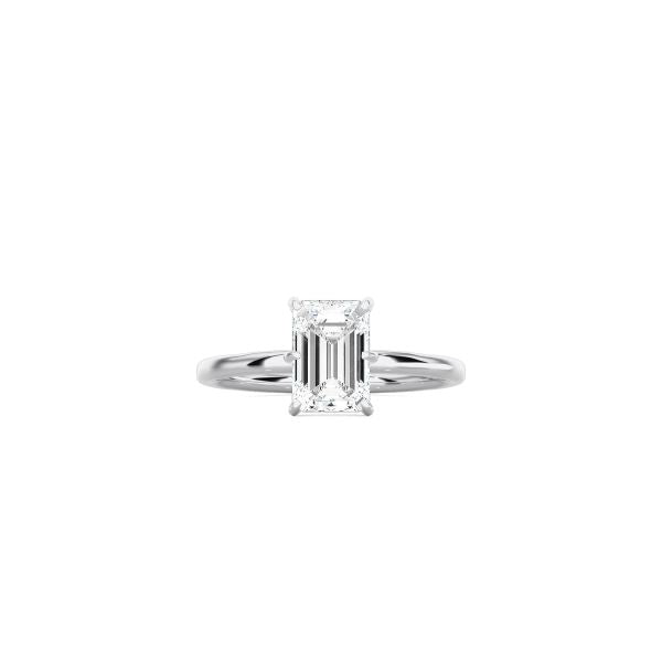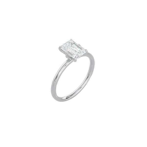 The 6 prong classic setting is the perfect choice for those who want a minimalist design that will last forever. Simple and elegant, it features an emerald cut diamond that in a 6-prong setting. The plain band hightlights the timeless brillance of the center stone that captures light at every angle.
