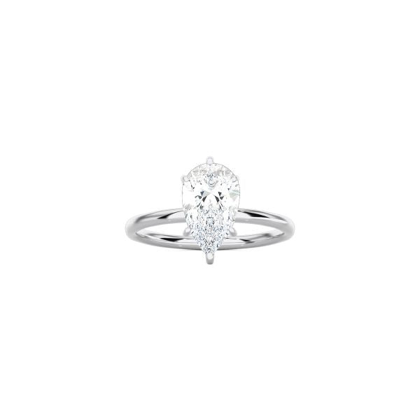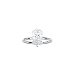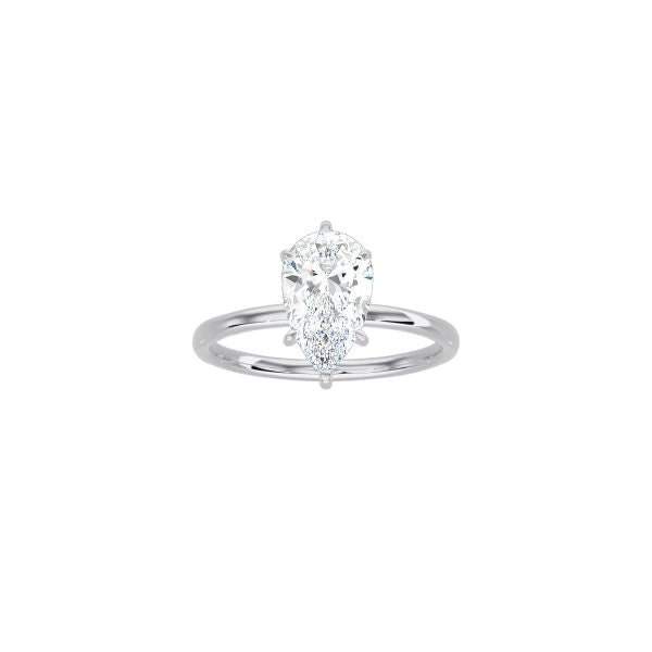 The 6 prong classic setting is the perfect choice for those who want a minimalist design that will last forever. Simple and elegant, it features a pear shape diamond that in a 6-prong setting. The plain band hightlights the timeless brillance of the center stone that captures light at every angle.