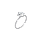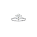 The 6 prong classic setting is the perfect choice for those who want a minimalist design that will last forever. Simple and elegant, it features a round brilliant cut diamond that in a 6-prong setting. The plain band hightlights the timeless brillance of the center stone that captures light at every angle.