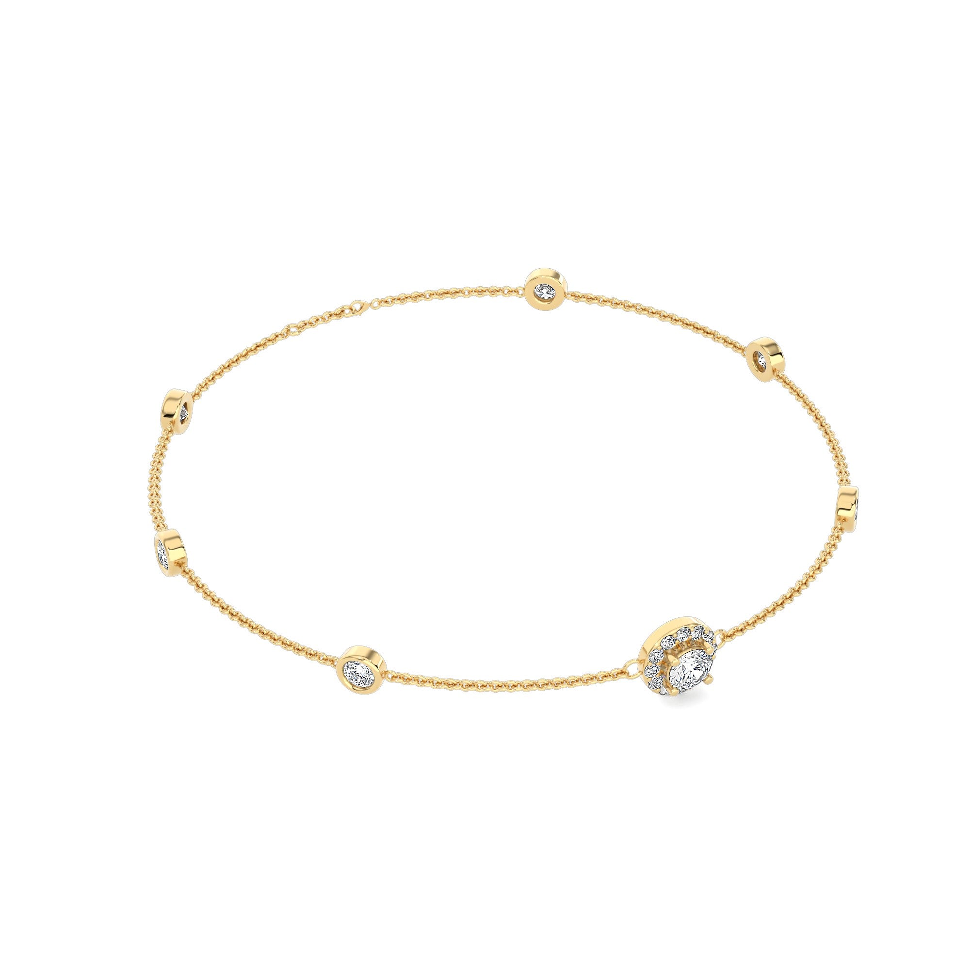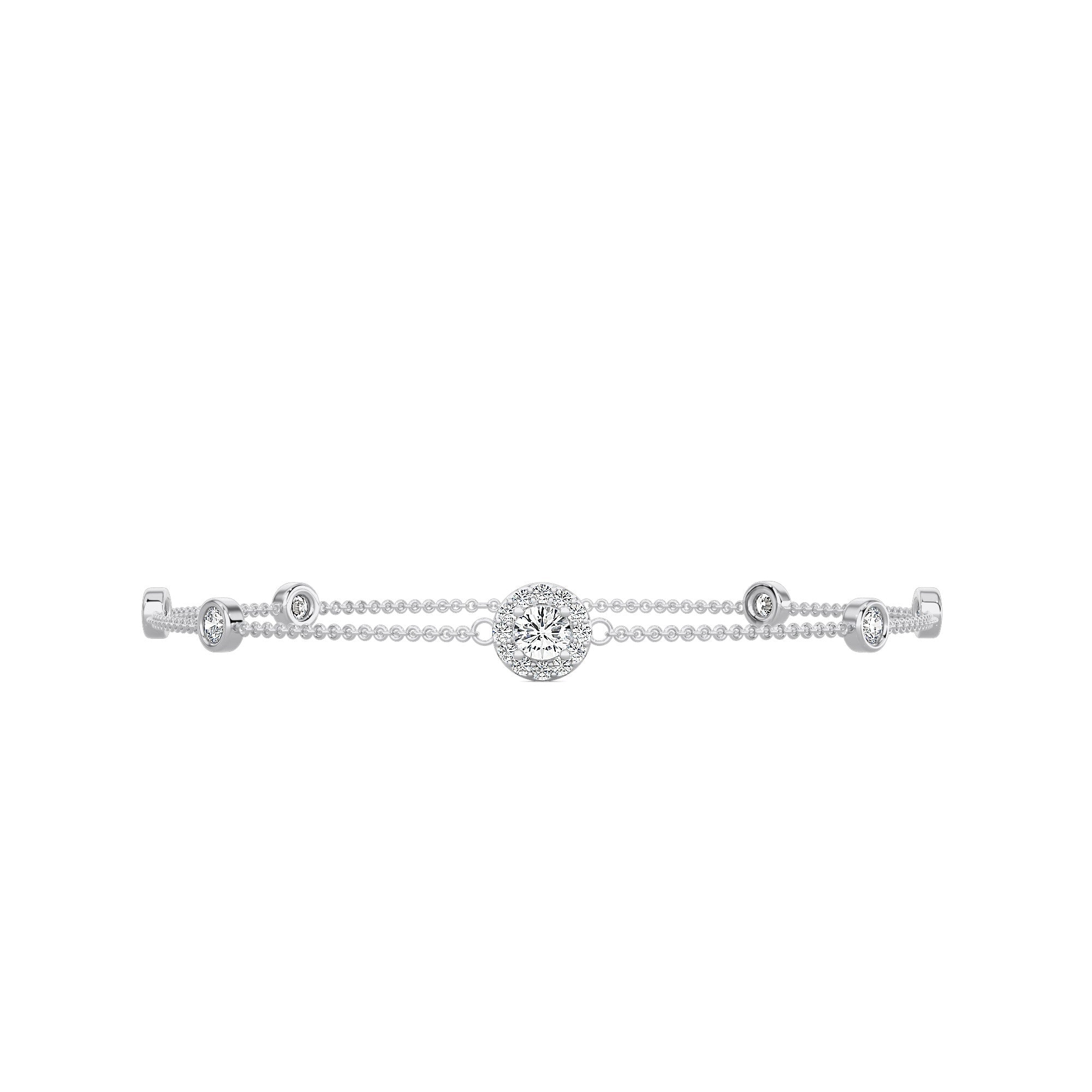 Ambition bracelet features a single large stone with a flow of smaller stones set in order on a chain.