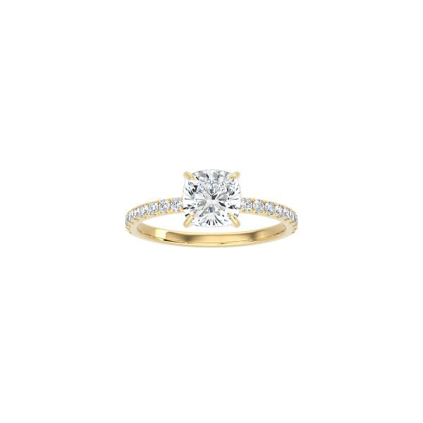 Classic Cushion Cut 4 Prong Ring with Pavé Band YG
