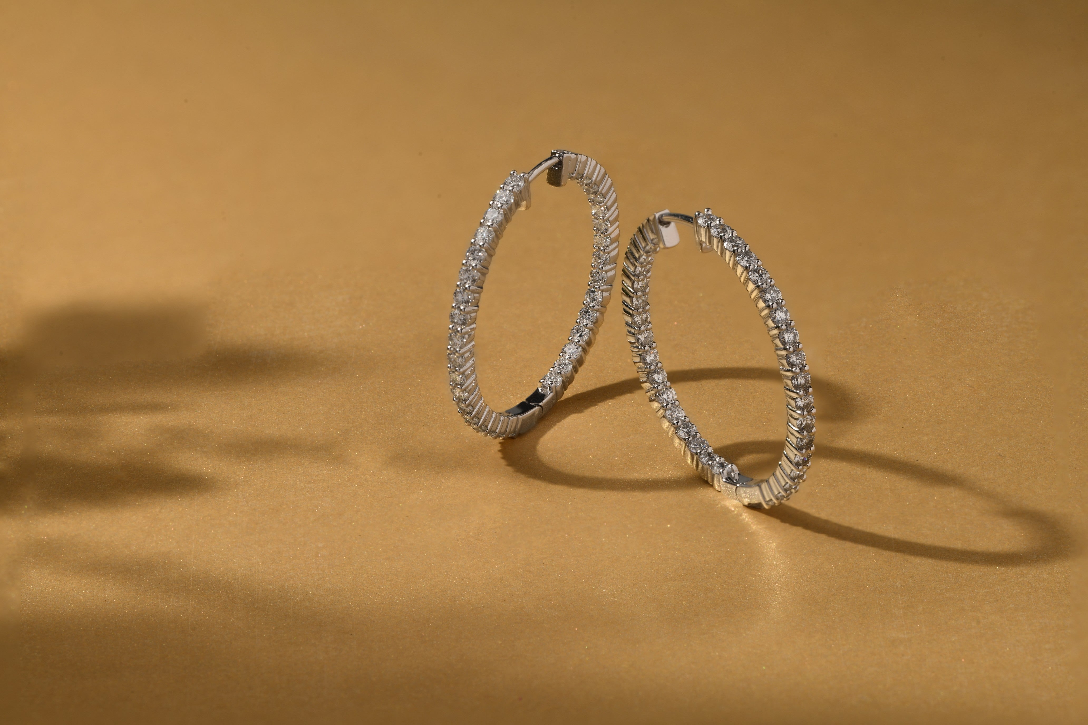 Our Classic Hoop Earrings feature a row of round brilliant cut diamonds set in white gold and is the subtle statement piece for every occasion.