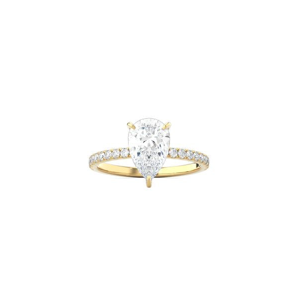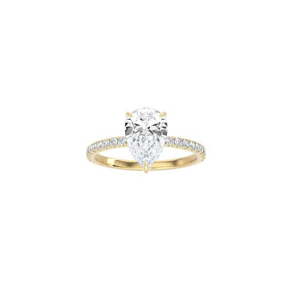 Classic Pear Shape 4 Prong Ring with Pavé Band YG