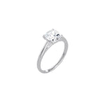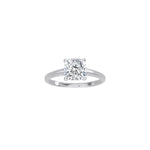 Inspired by the elegance of a cathedral, this engagement ring has a contemporary design with a timeless feel. Graceful arches rise from a plain band, accentuating the cushion cut diamond that captures light at every angle