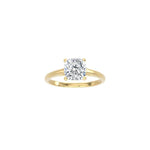 Inspired by the elegance of a cathedral, this engagement ring has a contemporary design with a timeless feel. Graceful arches rise from a plain band, accentuating the cushion cut diamond that captures light at every angle