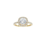 Cushion Cut Halo Engagement Ring with Pavé Band YG