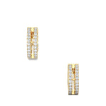 The Double Huggie Earring features a pair of small double hoops decked with round brilliant cut diamonds that add a hint of sparkle to your ensemble.
