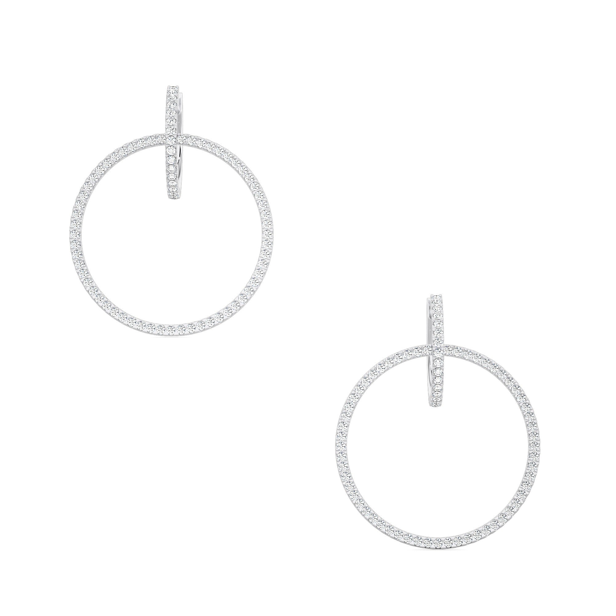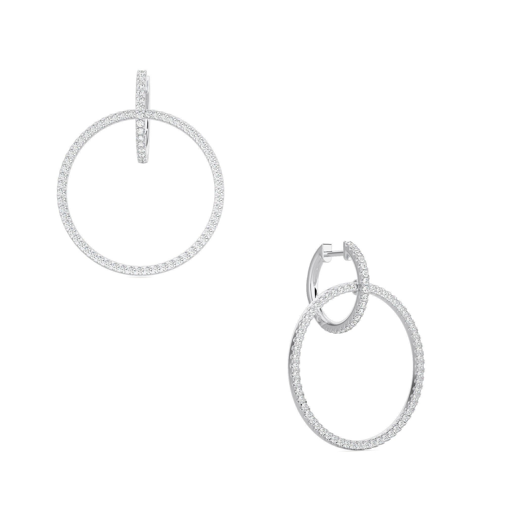 Delicate with an accent of glamour — our Edith Earrings feature an open circle of brilliant cut round diamonds cascading from a diamond-studded huggie earring.