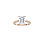 Inspired by the elegance of a cathedral, this engagement ring has a contemporary design with a timeless feel. Graceful arches rise from a plain band, accentuating the emerald cut diamond that captures light at every angle