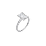 Inspired by the elegance of a cathedral, this engagement ring has a contemporary design with a timeless feel. Graceful arches rise from a plain band, accentuating the emerald cut diamond that captures light at every angle