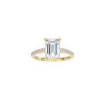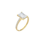 Emerald Cut Cathedral Setting Ring with Pavé Band YG