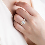 Inspired by the elegance of a cathedral, this engagement ring has a contemporary design with a timeless feel. Graceful arches rise from a pavé band, accentuating the emerald cut diamond that captures light at every angle.