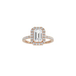 Emerald Cut Halo Engagement Ring with Pavé Band RG
