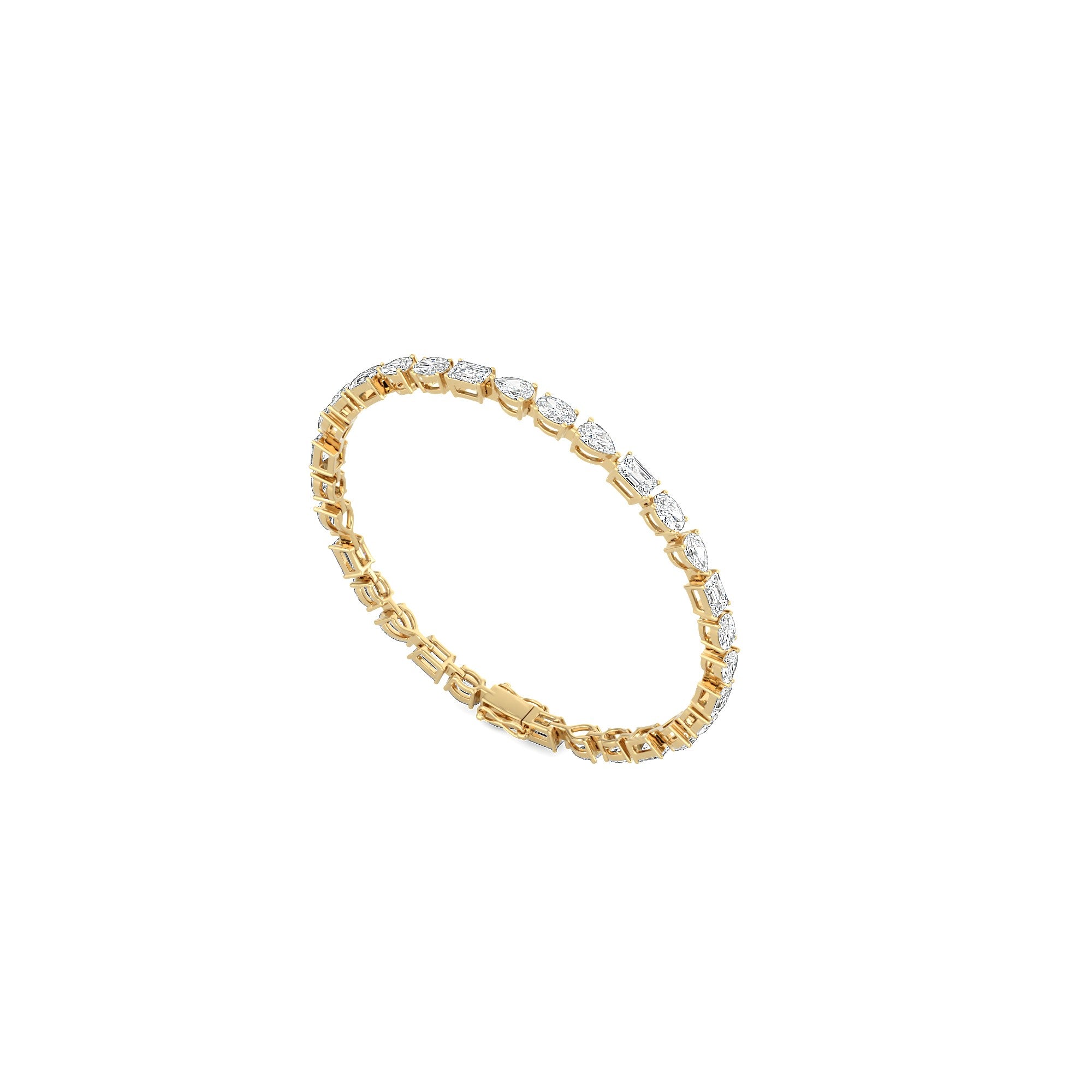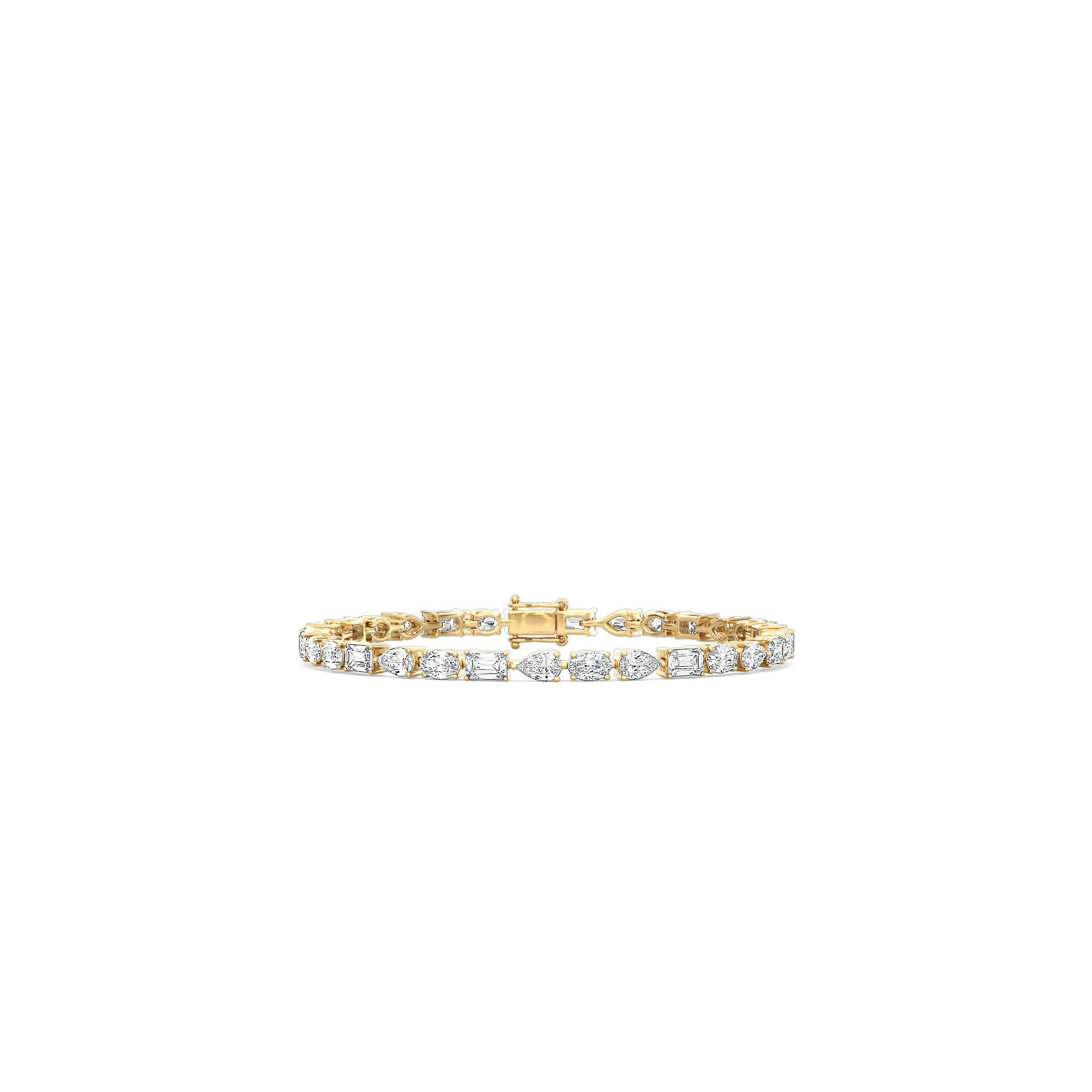 It's a contemporary spin on the classic, versatile tennis bracelet. Our Fancy Shape Bracelet features a row of pear shape, emerald cut and oval cut diamonds.