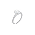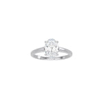 Inspired by the elegance of a cathedral, this engagement ring has a contemporary design with a timeless feel. Graceful arches rise from a plain band, accentuating the oval diamond that captures light at every angle