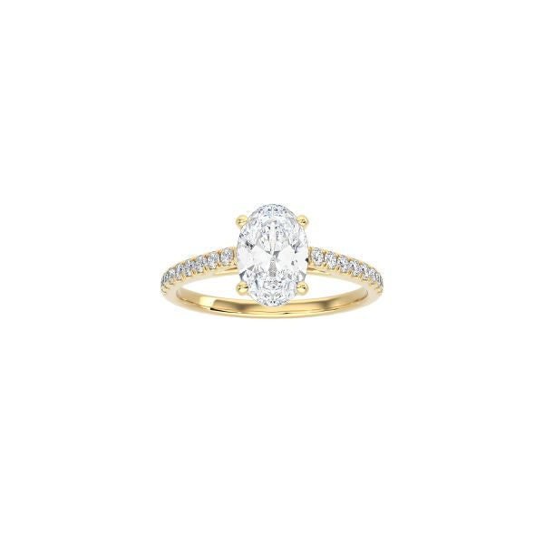 Oval Cut Cathedral Setting Ring with Pavé Band YG