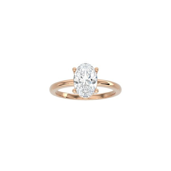 The Contemporary Four Prong Setting provides a modern flair to a classic four prong design. The simple design ensures the Oval cut diamond to be center of attention