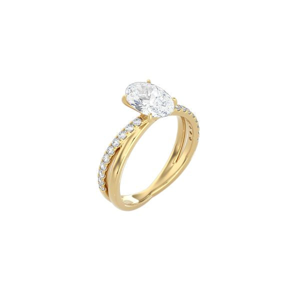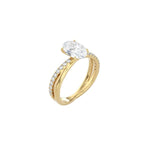 Luxury is in the details in this minimalist yet eye-catching style. The plain and pavé cross band perfectly complements the oval diamond solitaire in the elegant Oval Cut and Gold Cross Band engagement ring.