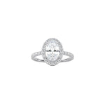 Oval Cut Halo Engagement Ring with Pavé Band WG