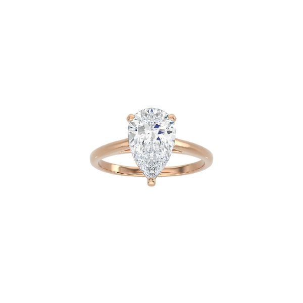 Inspired by the elegance of a cathedral, this engagement ring has a contemporary design with a timeless feel. Graceful arches rise from a plain band, accentuating the pear shape diamond that captures light at every angle
