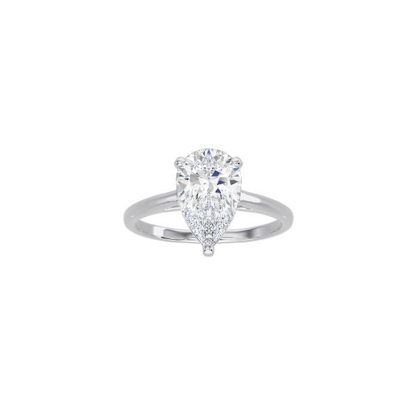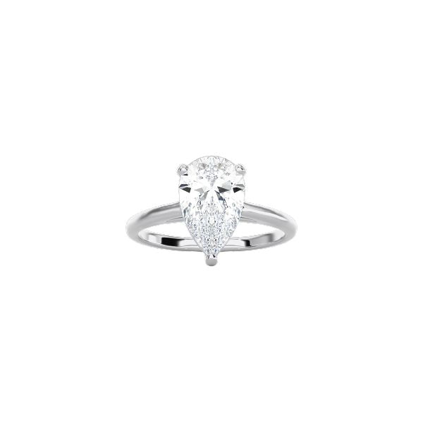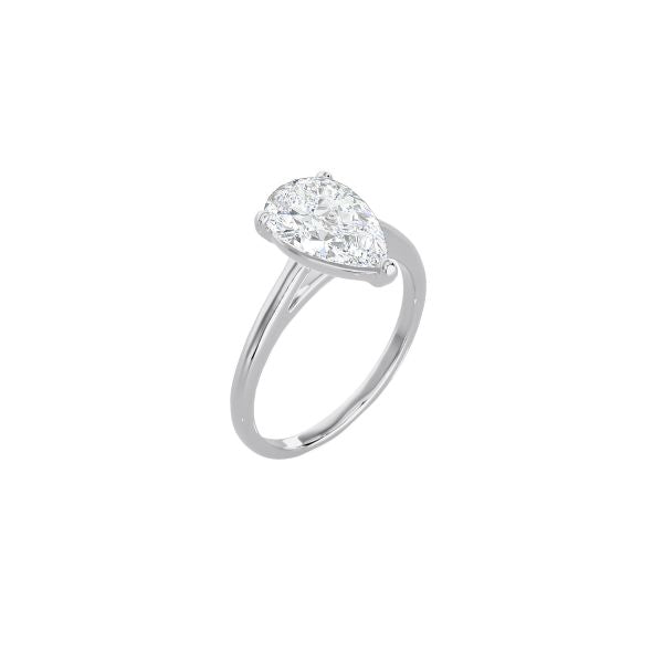 Inspired by the elegance of a cathedral, this engagement ring has a contemporary design with a timeless feel. Graceful arches rise from a plain band, accentuating the pear shape diamond that captures light at every angle