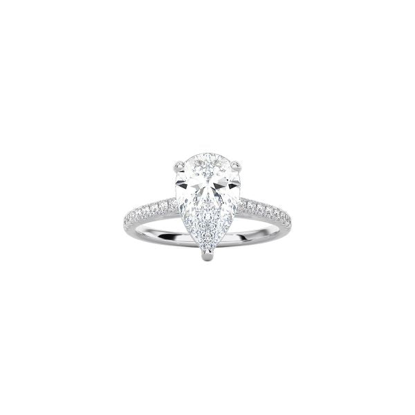 Pear Shape Cathedral Setting Ring with Pavé Band WG