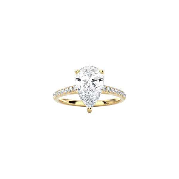 Pear Shape Cathedral Setting Ring with Pavé Band YG