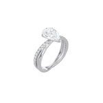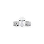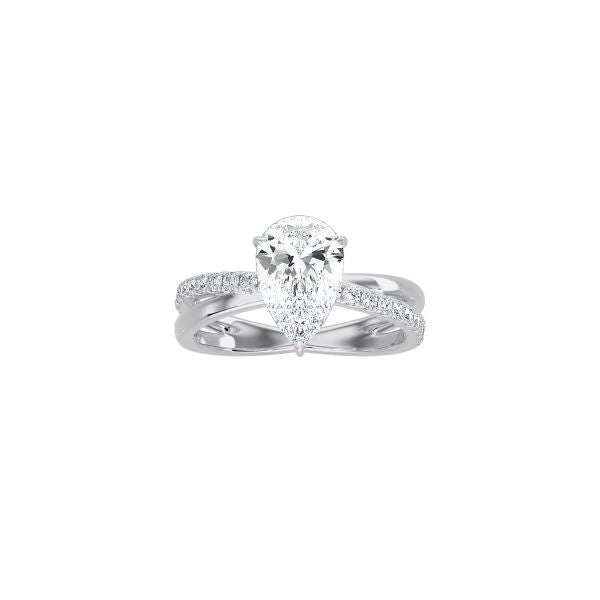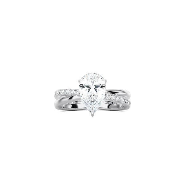 Luxury is in the details in this minimalist yet eye-catching style. The plain and pavé cross band perfectly complements the pear shape diamond solitaire in the elegant Pear Shape Diamond and Gold Cross Band engagement ring.