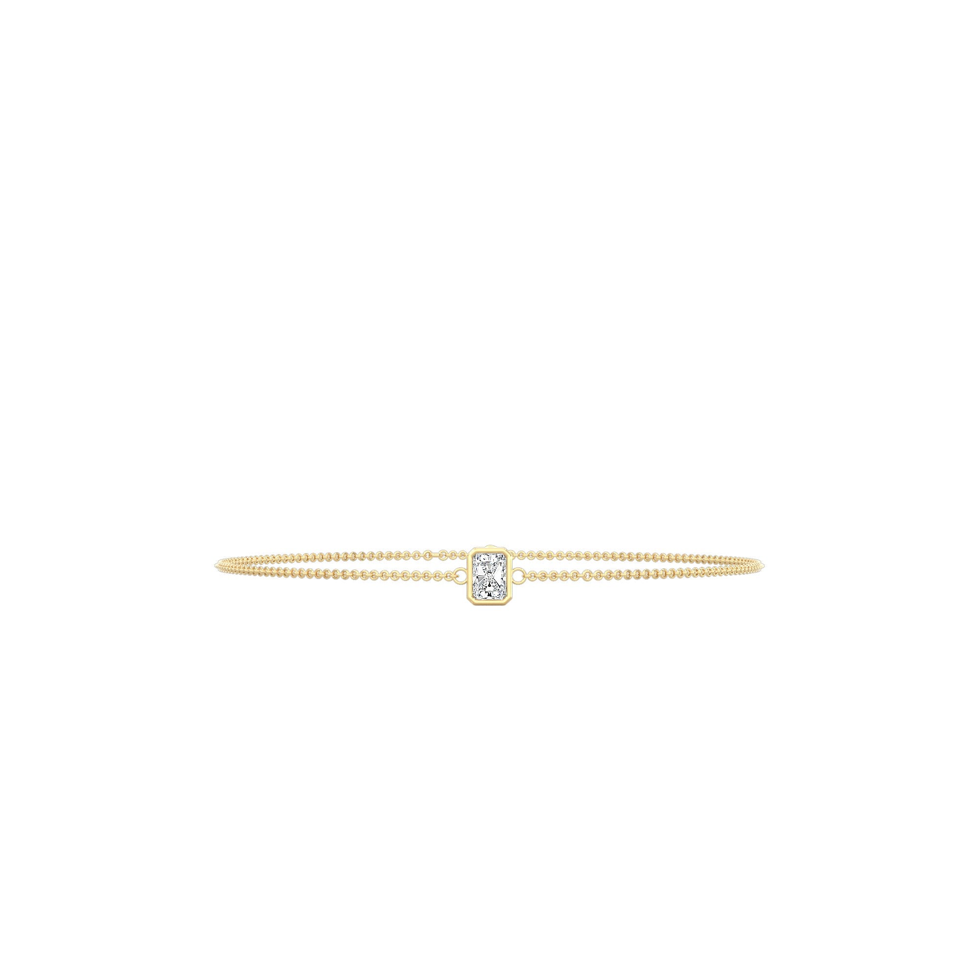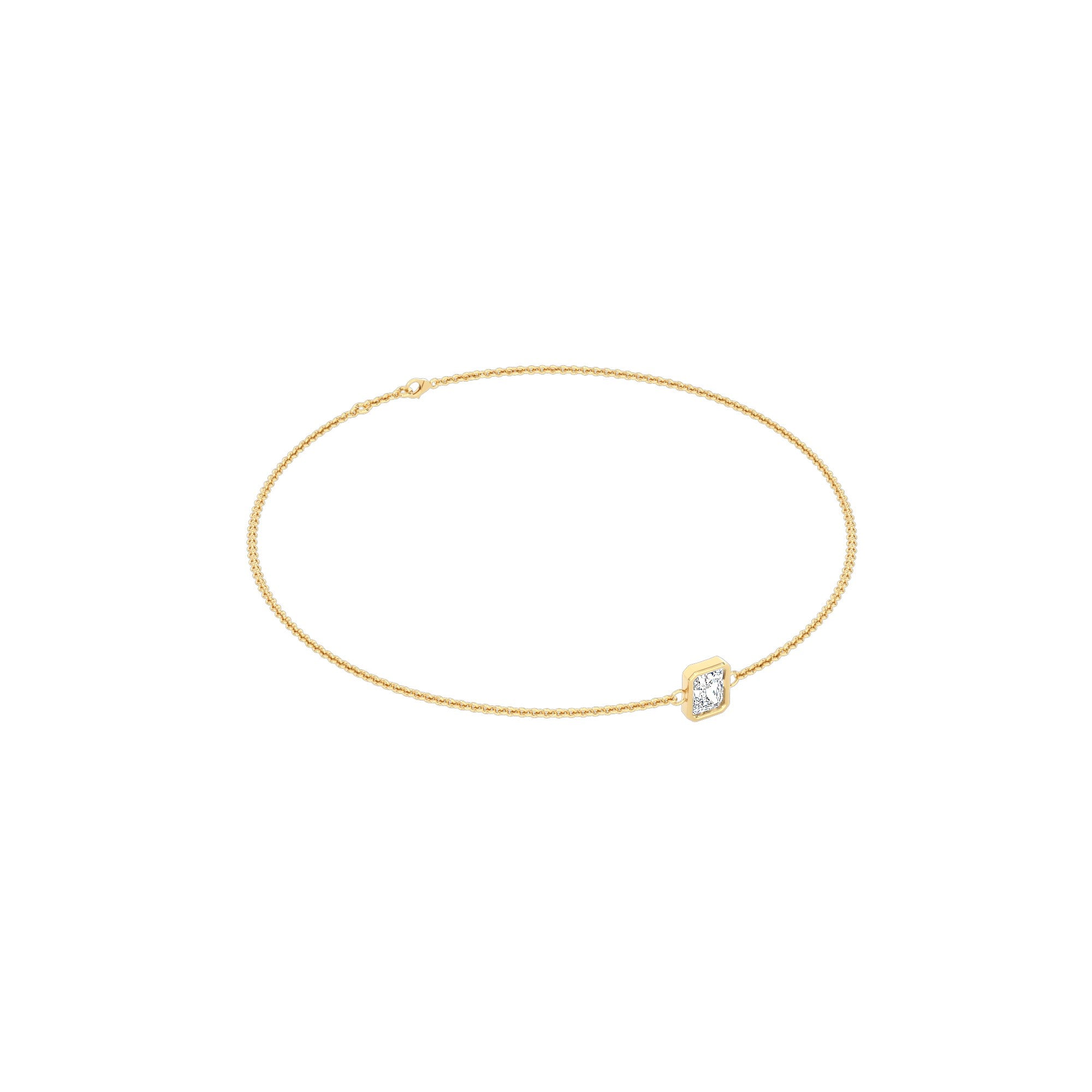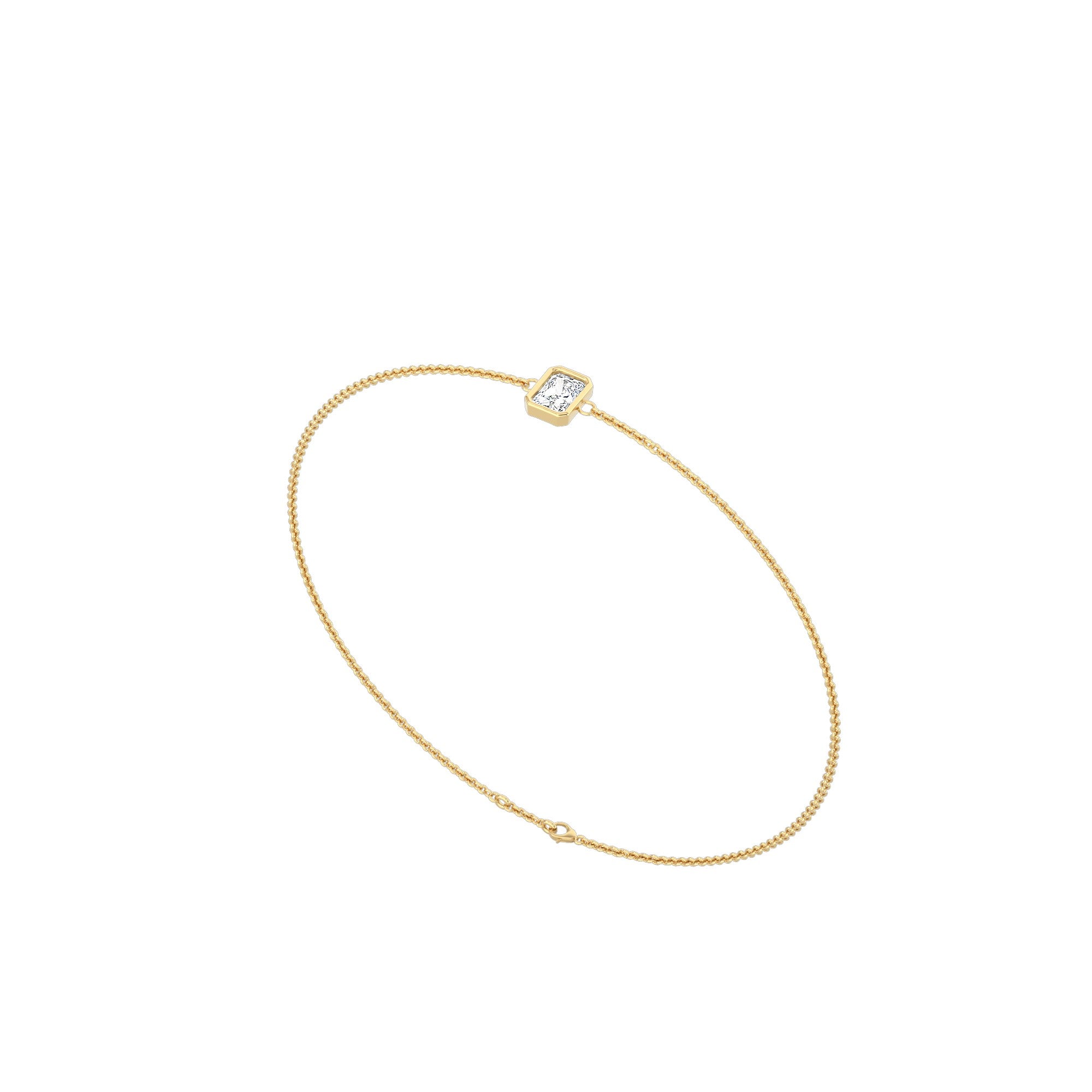 A minimalist design featuring a radiant cut solitaire stone on a chain.