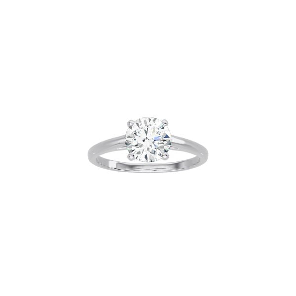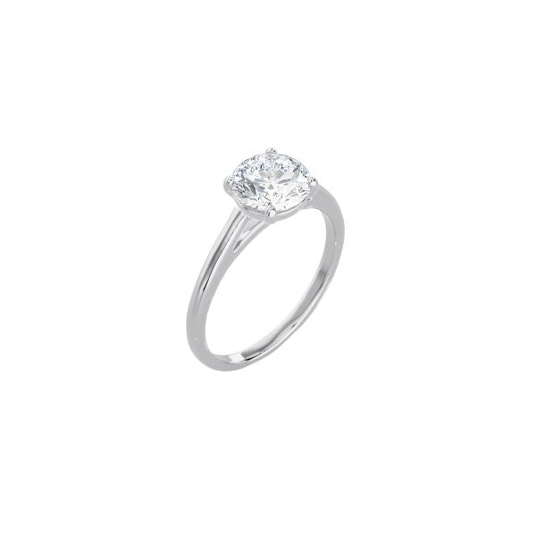Inspired by the elegance of a cathedral, this engagement ring has a contemporary design with a timeless feel. Graceful arches rise from a plain band, accentuating the round brilliant cut diamond that captures light at every angle