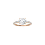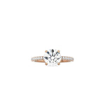 Inspired by the elegance of a cathedral, this engagement ring has a contemporary design with a timeless feel. Graceful arches rise from a pavé band, accentuating the round brilliant cut diamond that captures light at every angle.
