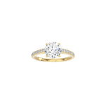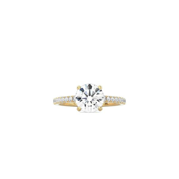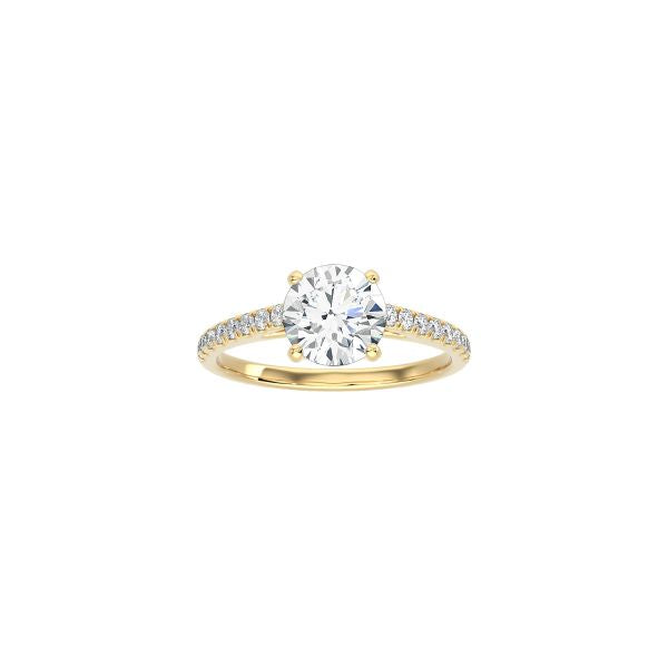 Inspired by the elegance of a cathedral, this engagement ring has a contemporary design with a timeless feel. Graceful arches rise from a pavé band, accentuating the round brilliant cut diamond that captures light at every angle.