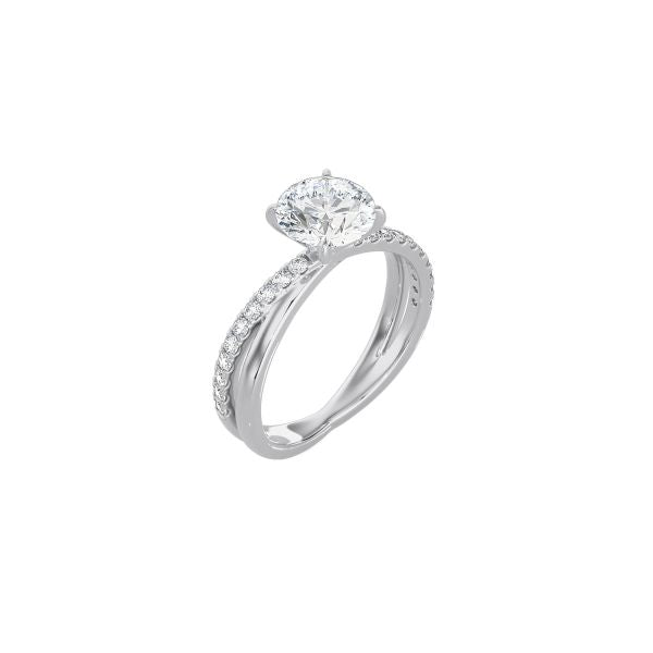 Luxury is in the details in this minimalist yet eye-catching style. The plain and pavé cross band perfectly complements the round brilliant cut diamond solitaire in the elegant Round Diamond and Gold Cross Band engagement ring.
