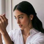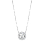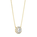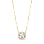 Perfect alone or layered, the Round Diamond Halo Necklace features a round brilliant cut diamond encompassed by a ring of dainty round diamonds.