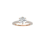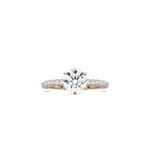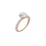 The Triple Row Pavé Band is an enduring symbol of love. Three rows of pavé diamonds adorn the band with a round brilliant cut diamond at the center.
